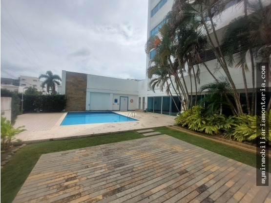 MYM INMOBILIARIA MONTERIA: arrienda apartamento en el Recreo, cerca a la ronda norte. Consta de sala comedor, balcón, baño social, cocina integral, area de labores, habitacion de servicio con baño, estudio, habitacion principal con vestier, baño con jacuzzi, 2 habitaciones auxiliares con closet y baño c/u, 2 parqueaderos. El conjunto cuenta con area social, piscina.